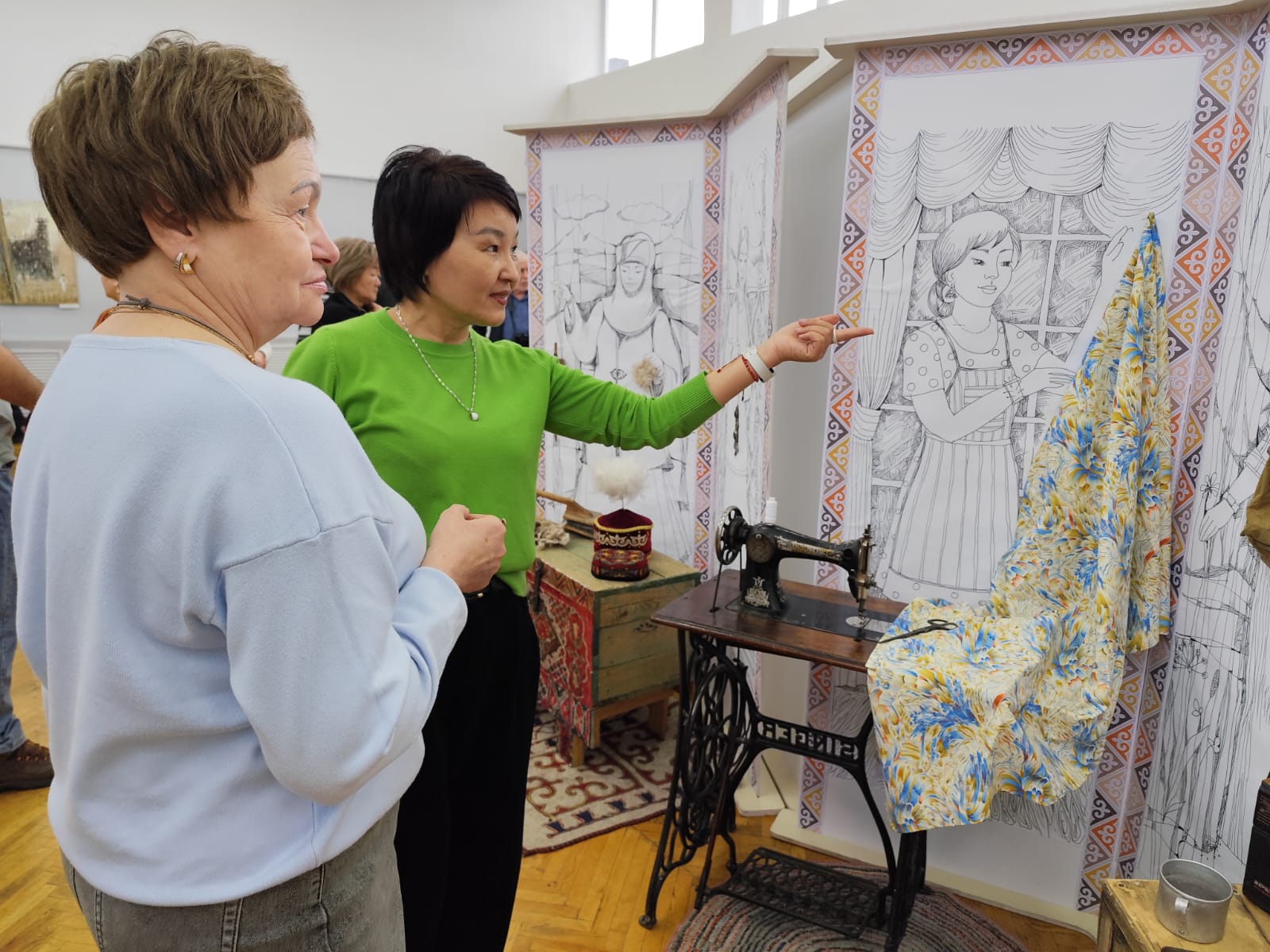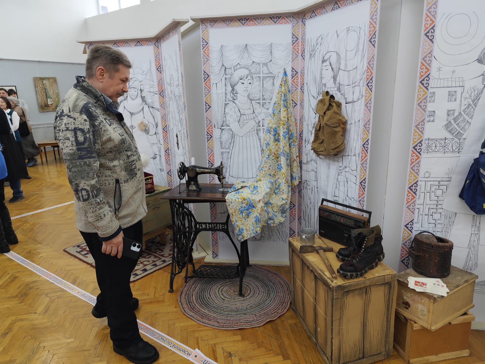 Экспозиция объединяет музейный предмет и авторскую графику, позволяя посетителям увидеть взаимосвязь между историческим артефактом и художественным воображением.