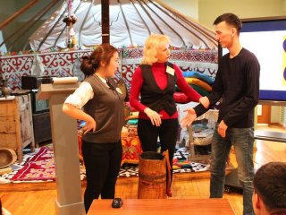 Для участия в игре были приглашены те, кто является постоянными посетителями и уже не первый раз приходят в музей. Ими стали студенты колледжа "Мирас" и студенты Политехнического колледжа. Игра получилась увлекательная. И ребята показали хорошие знания.